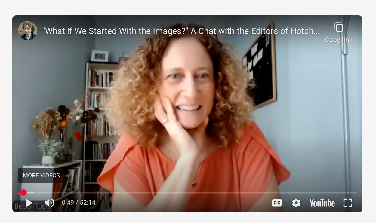 Fast forward to summer of 2025. I reached out to Becky to see if she would be interested in interviewing editors from Hotch Potch Literature and Art, a magazine I co-founded with some writer and artist friends during COVID. She enthusiastically said yes. Yesterday Becky hosted us, and the conversation was a sheer delight.